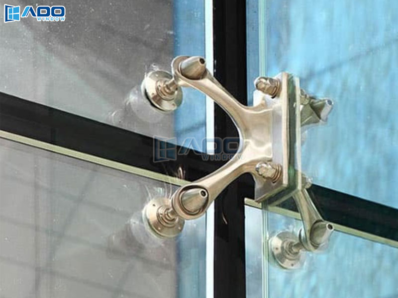 Sau đó, lực được truyền từ kính sang các phụ kiện liên kết như spider hoặc kẹp kính. Những phụ kiện này có nhiệm vụ giữ cố định kính và đồng thời truyền lực sang kết cấu giàn thép.